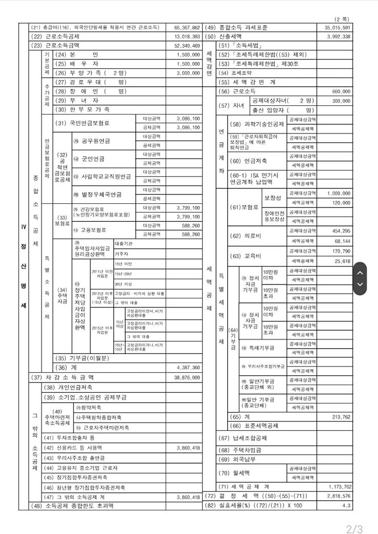서류를 정상적으로 제출했다면 제대로 반영되었을 가능성이 높은데, 국세청에서 계산한 내역도 확인이 되실 겁니다. 각 항목 별로 어떤 부분에서 차이가 있는지 확인해보시는 것도 좋을 것 같습니다.