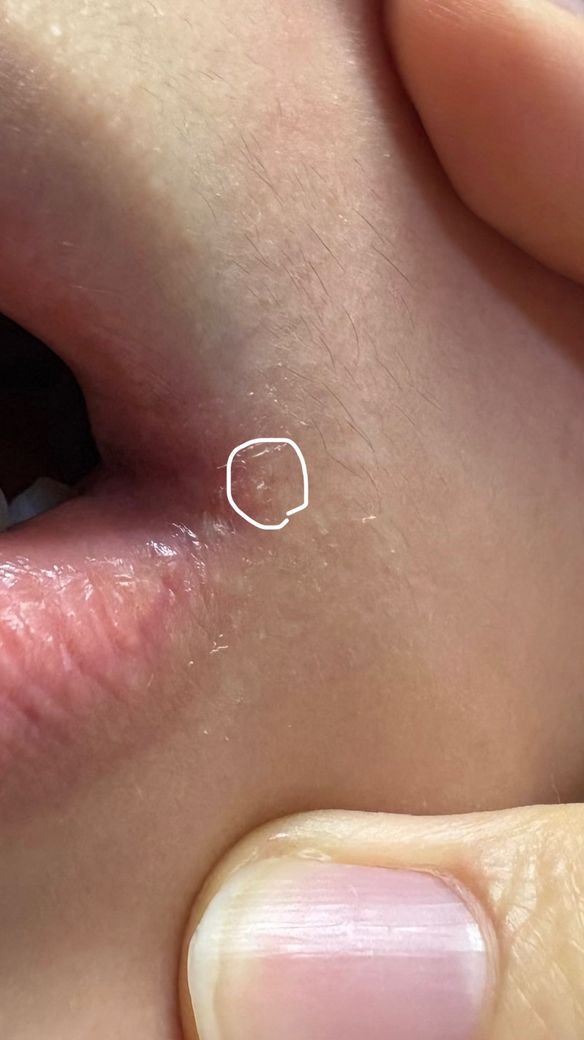 올려주신 사진과 설명해주신 정황으로 미루어 단순포진(헤르페스 1형)일 가능성이 높습니다.