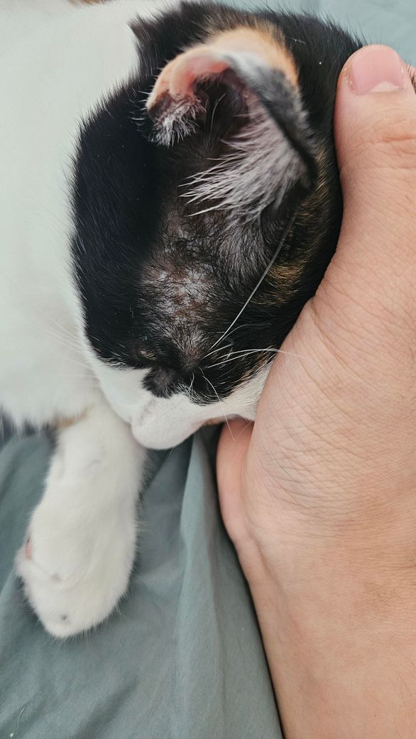 귀 밑에 털 없는 부분이 원래 어두운 색이었눈데 작년말에 하얀 점이 보이더니 어느순간 점점 넓어져 이렇게 얼룩덜룩 되었습니다.