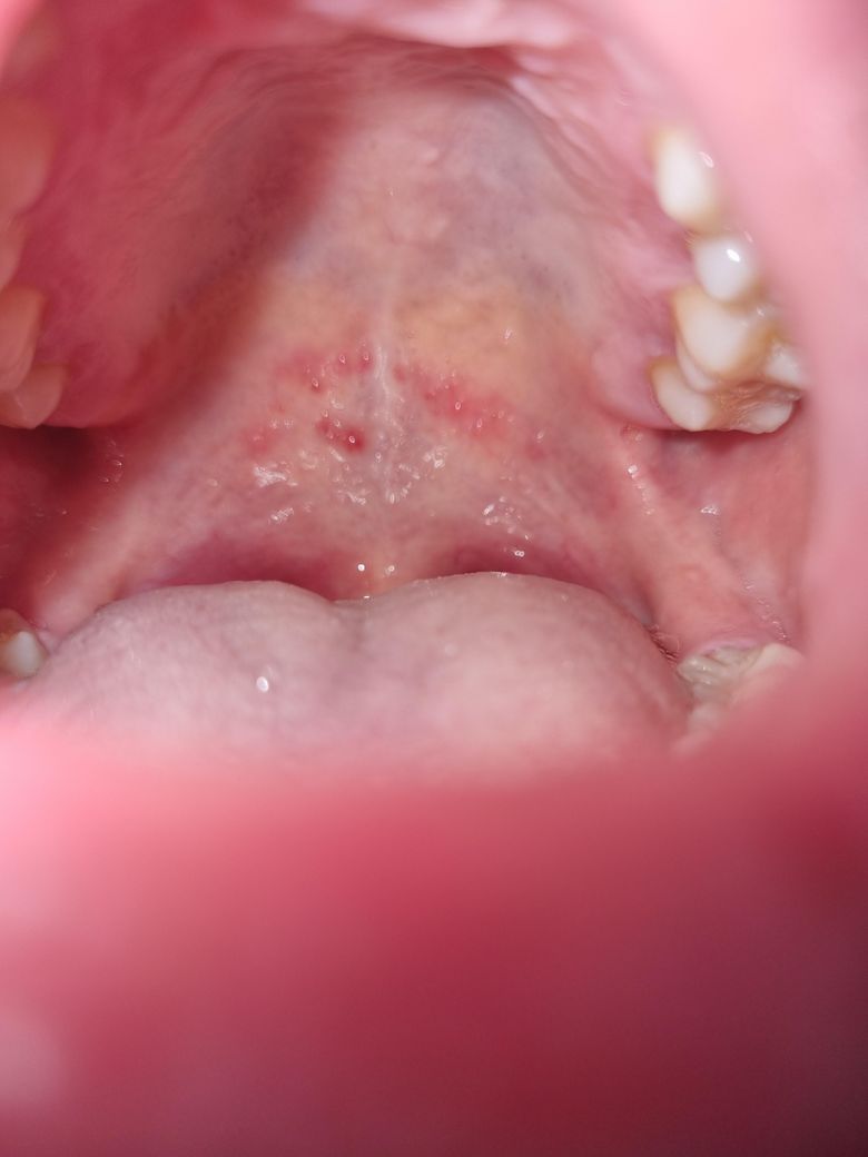 헤르페스성 감염 (근데 입술말고 입천장만 수포)