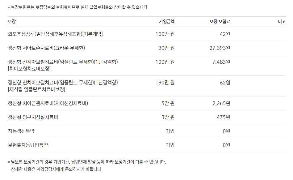 현재 가입중인 메리츠화재 이목구비치아보험입니다.
