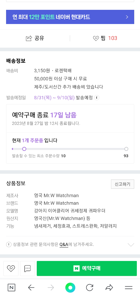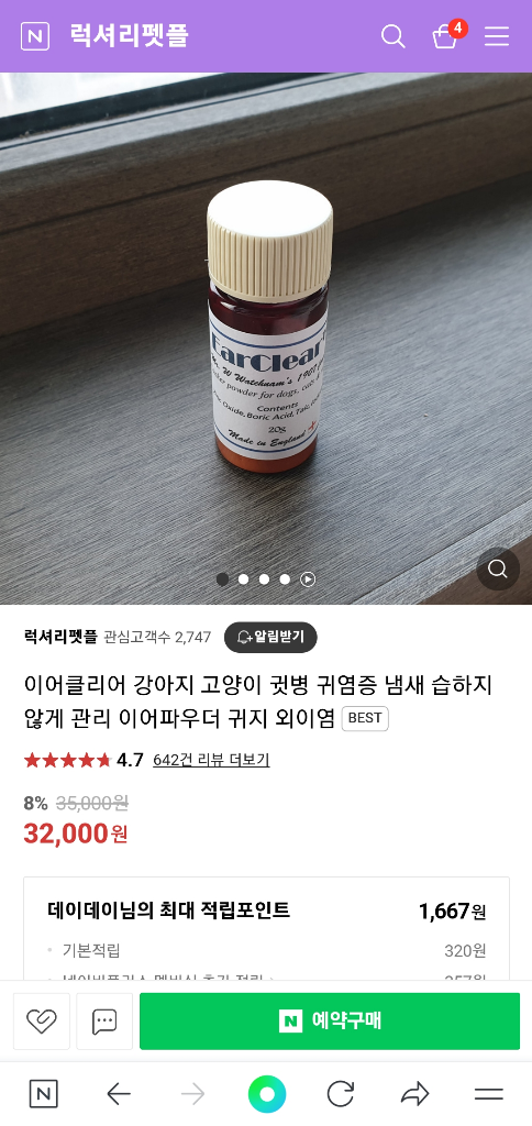 이어클리어 파우더를 사용하시고 계시고 벌써 3주째 사용하고 계셨어요 좋은 효과를 보고 있는데 냄새가 너무 지독하다고 말씀하시네요 강아지는 후각과 청각이 매우 민감합니다 사람에게 이 정도의 냄새가 지독하다면 강아지는 매우 매우 냄새에 자극을받고. 있다고 생각해 보아야 합니다 물론 약을 만든 회사에서 이 문제도 어느 정도 해결을 했을 가능성이 있습니다만 효과도 좋고 냄새도 좋은 이어클리너들이 많이 있는데 굳이 이것을 쓸 필요가 있을까요.