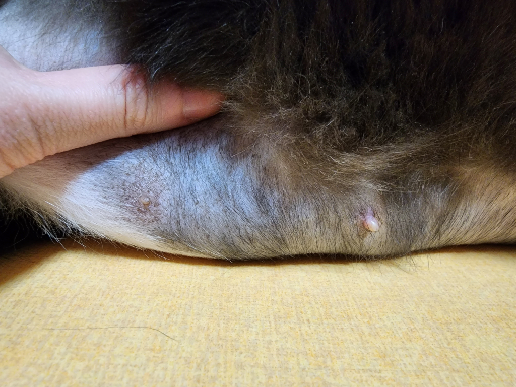 이렇게 중성화수술을 하지 않고 노려인 경우 호르몬 불균형에 의해서 유선염이나 유선종양이 생길 수 있습니다.