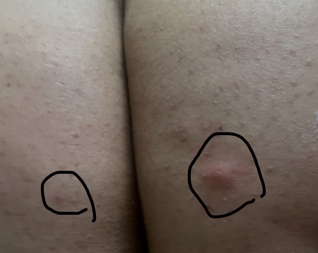 엉덩이 쪽에 이렇게 두개 동그라미 친거처럼 뭐가 났는데 단순 뾰루지 같은게 난거 같긴 하거든요 혹시 헤르페스 같은 성병병변이 아닐까 걱정되어 이렇게 질문드렸습니다 답변해주시면 정말 감사하겠습니다 ㅜㅜ