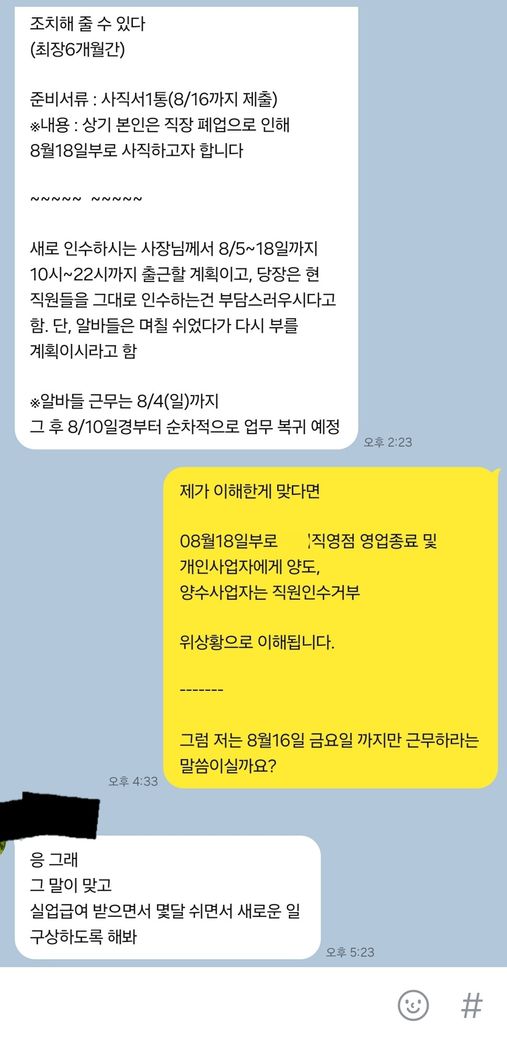 1. 위 사진상의 카톡내용으로도 해고라는게 증빙이되나요?