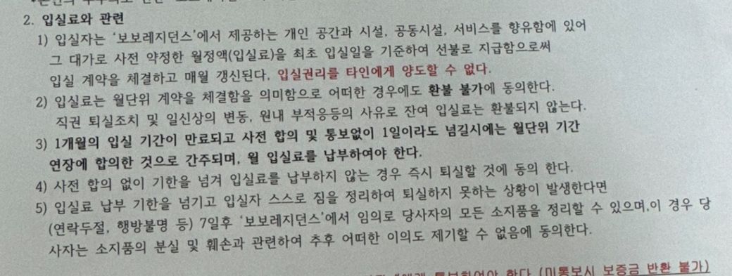 이점으로 인해 다른 고시원을알아봐서 퇴실하려고하는데 계약서상 한달계약 때문에 부분환불이 불가능하고 보증금만 환불이 된다는데