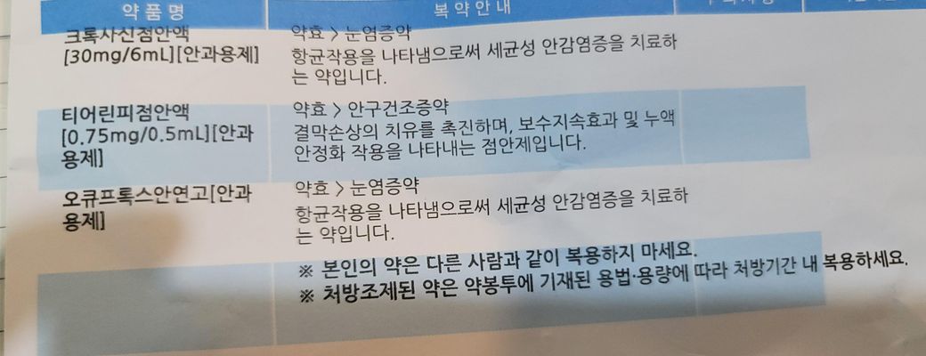 눈에 넣는약 동시에 같이 사용해도 되는지