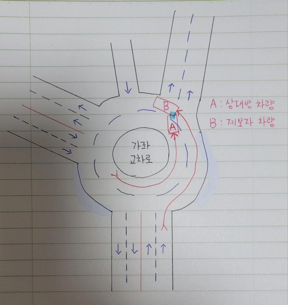 원형2차선 회전교차로 사고입니다. 제 과실이 어떻게 될까요?