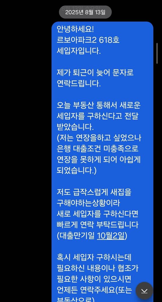 그래서 저는 8월첫주 부동산으로부터 임대인분이 계약에관해서 어찌할지 문의가 오셨다
