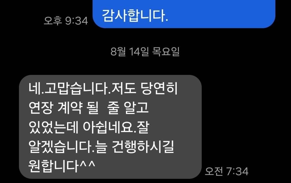 문자로 서로 종료하게 되었음을 주고받았습니다.
