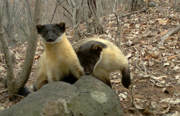 노랑목도리담비와 삵 중에는 노랑목도리담비가 포식자입니다. 노랑목도리담비는 담비속 포유류 중 가장 대형으로 성체의 경우 몸통의 길이 59-68cm, 꼬리의 길이 40-45cm 입니다.