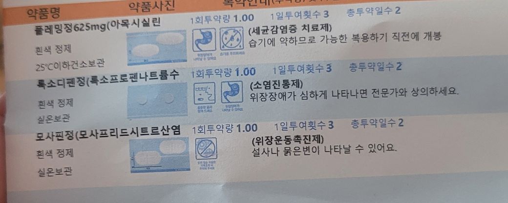 아래 처방받은 약입니다!