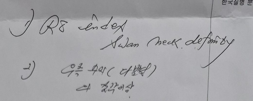 "오른쪽 검지 백조목 기형"이라고 되어 있는 것 같습니다.