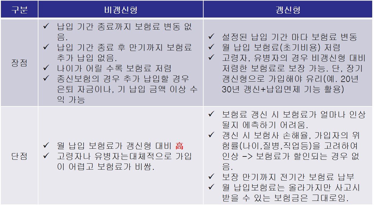 하지만 30~40대의 경우 보험이 하나도 없다면 비갱신으로 가입을 추천드립니다.