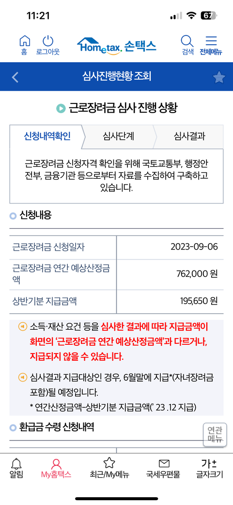 근로장려금 9월에 신청했었는데 이번 6월말에 나오는 건가요?