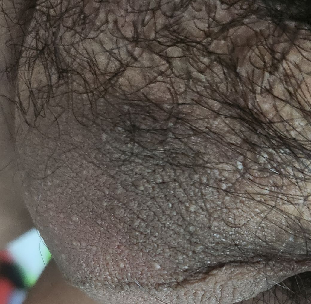 상대방은 감염된지 모르나 불건전한 성생활을 하는것 같아보입니다. 노콘돔으로 오랄을 1분정도 받았고 2분정도 콘돔을 낀채로 관계를 맺었습니다. 관계이후 다음날 성기가 간지러운것을 느꼈고 현재 살짝 두통이 생겼다가 사라졌습니다. 고환쪽에 오돌토돌한게 있는데 닭살인가요 아니면 헤르페스에 의한 수포인건가요?