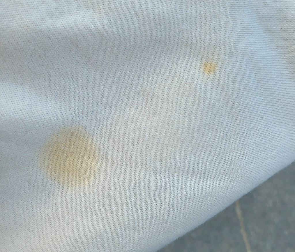 50도정도의 온수에 과탄산소다를 한컵정도 희석시키고 사진속의 옷을 15분정도 담그고 5분간 주물러주세요.
