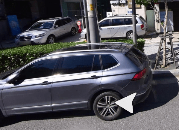 사진을 확인할 수 없어 정확한 답변은 불가하나 주차는 정해진 장소에 할 수 있는 것이며 도보에는 주차할 수 없습니다.