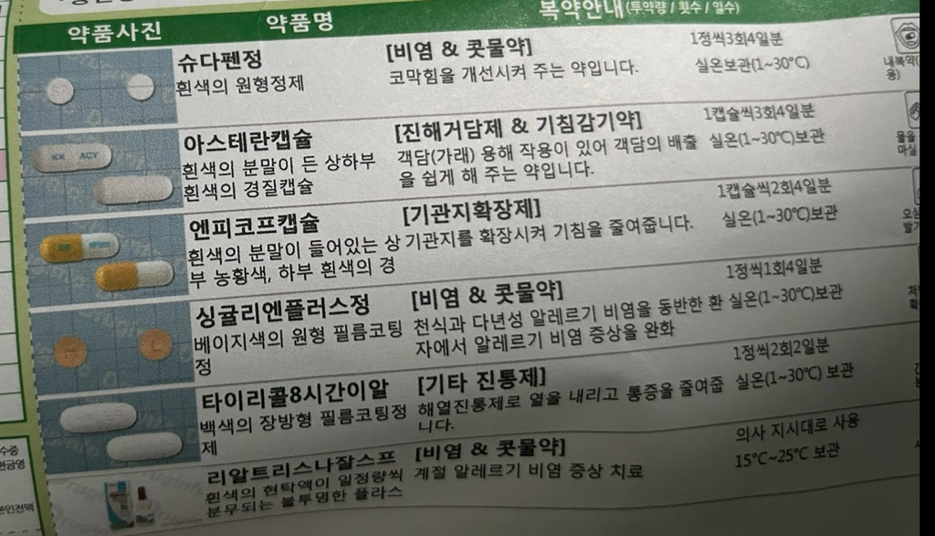 1번 사진에 나온 약들을 오늘 아침 9시까지 복용한 경우 오후에 새로운2번째 사진의 약을 이어서 복용을 하셔도 괜찮습니다.