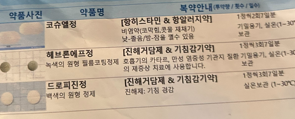 두 가지 약 중 코슈엘정과 슈다펜정은 서로 중복되는 성분이 들어있으므로 같이 드시지 않는 것이 좋습니다
