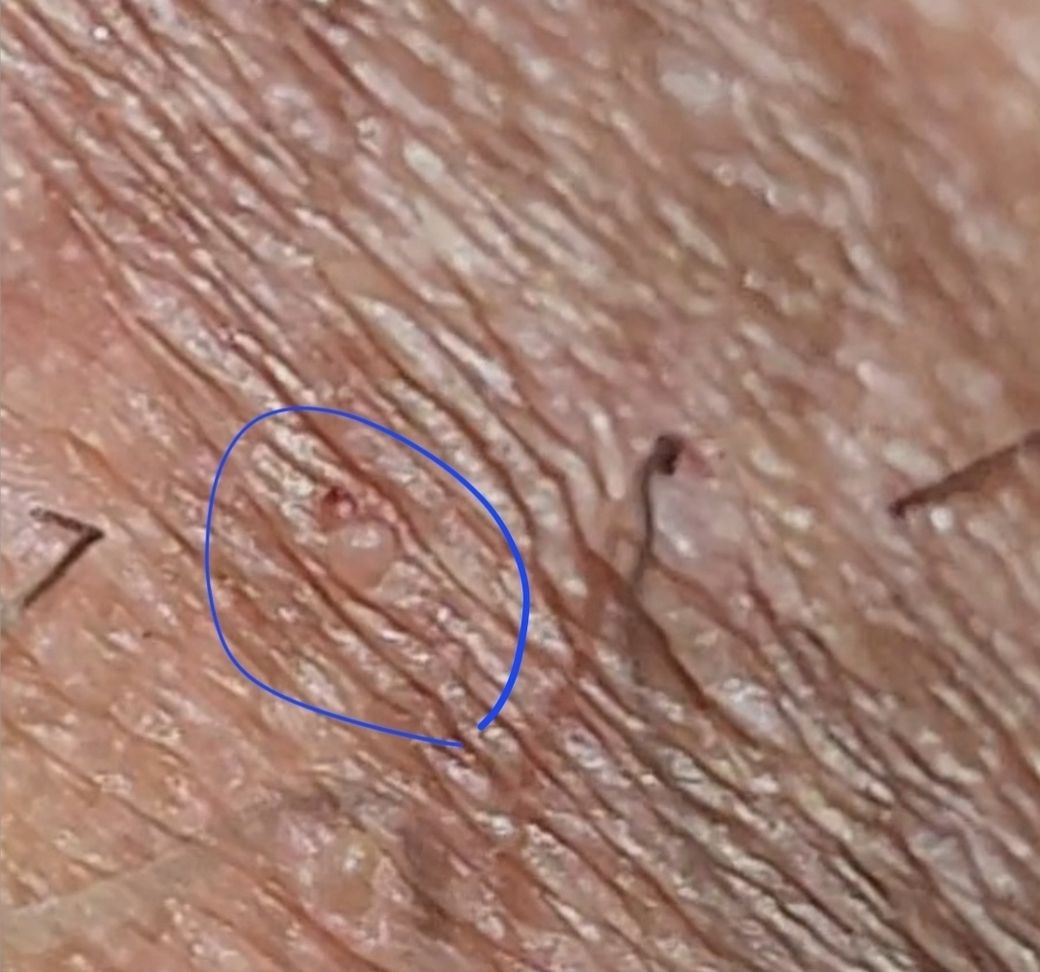 처음엔 뾰루지 위에 각질같이 하얀게 보였으나 긁다보니 동그란 부분만ㄴㅏㅁ았습니다.