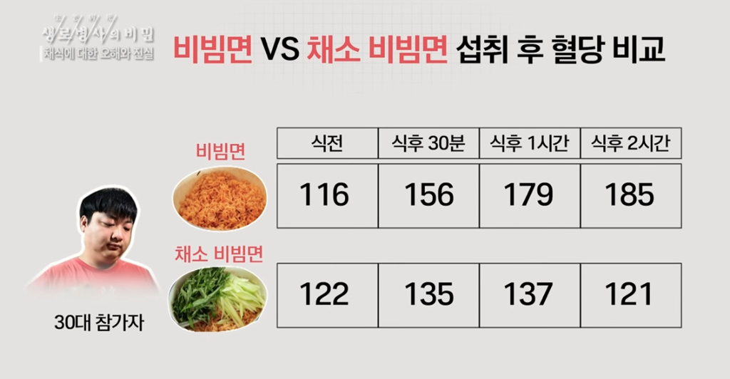 같은 식사임에도 채소가 있는지 없는지에 따라 이렇게나 혈당이 다릅니다!👍