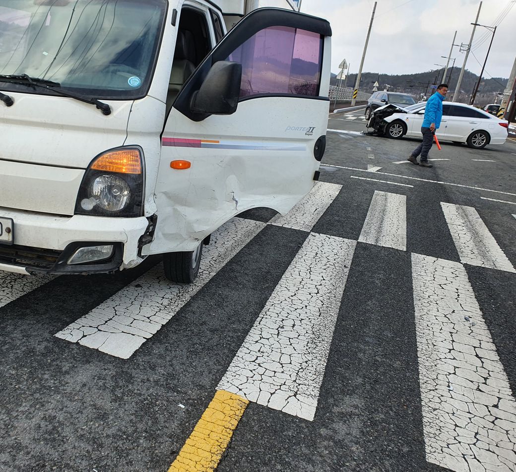 또한 같은 도로 크기라도 우측 차량이 우선권이 있기 때문에 좌측 차량이 가해차량이 됩니다.