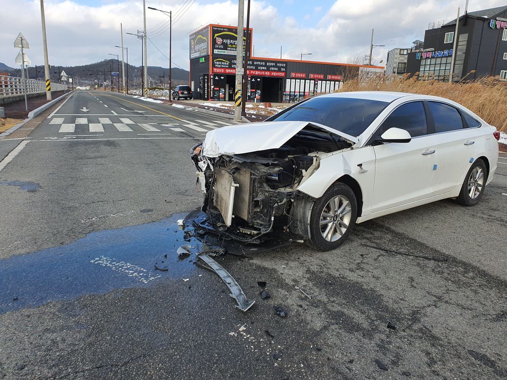 위 사진만으로는 한쪽은 편도 2차선으로 확인이 되지만 승용차가 나온 도로 크기가 확인이 안됩니다.