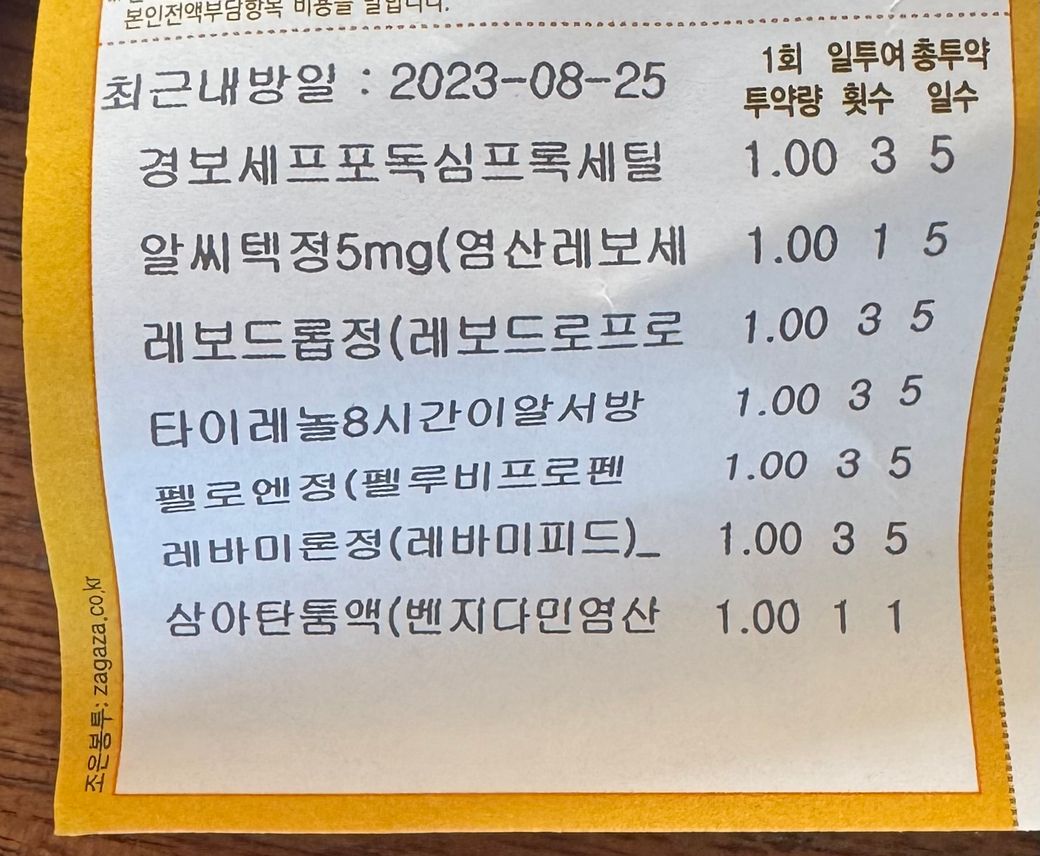 아침 점심 저녁에 타이레놀 한 알씩 들어있기에 통증이 너무 불편한 경우 타이레놀 500미리를 한알 추가로 복용해도 됩니다. 아세트아미노펜으로 하루최대 4000미리는 넘지 않게 복용을 하면 괜찮습니다.