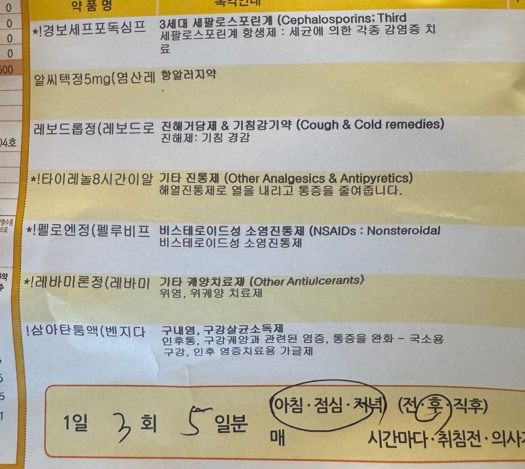 편도선염 걸려서 약 먹고 있는데 머리가 진짜 약을 먹어도 일상생활을 못할정도로 너무 어지럽고 물도 못 마실정도로 목이 너무 아픈데 아침 점심 저녁에 타이레놀 한 알씩 밖에 안 들어가 있는데 한알 500짜리 제가 따로 더 먹어도 될까요