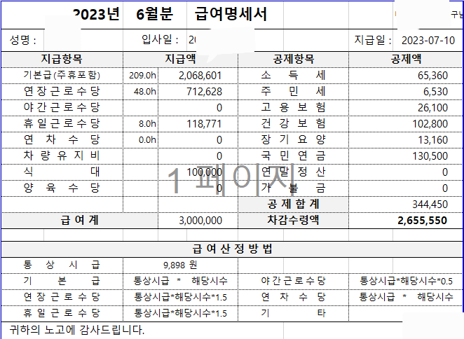 급여명세서와 더불어서