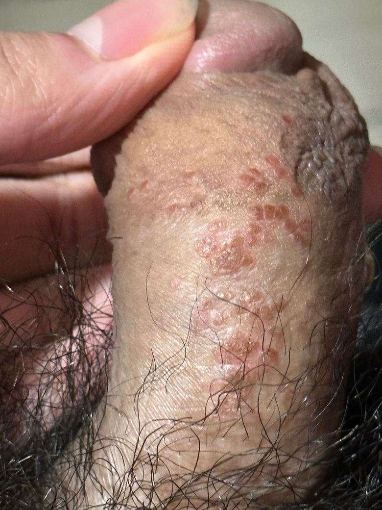 성기에 사진과 같은 증상이 나타났는데 어떤 성병인가요..? 비뇨기과에 가도 곤지름이라고 하시더니 또 아닌것같다고 약만 처방해줘서요