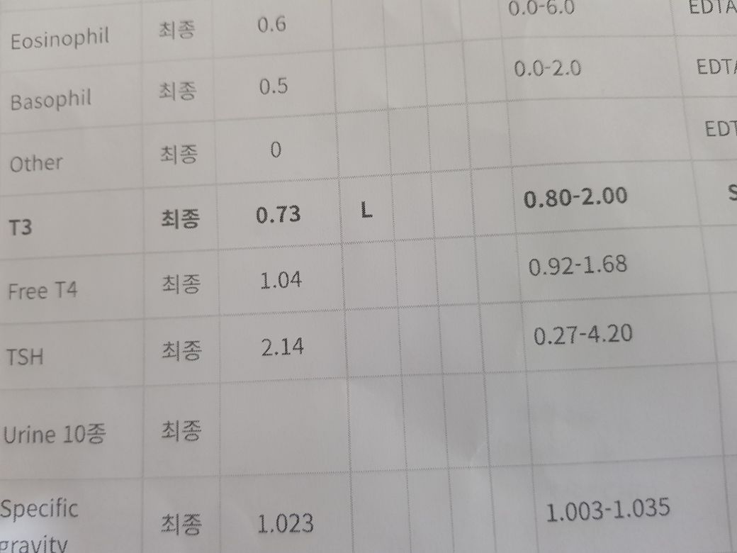 갑상선 T3 수치가 0.73으로 낮게 나왔는데 무슨 병인가요?