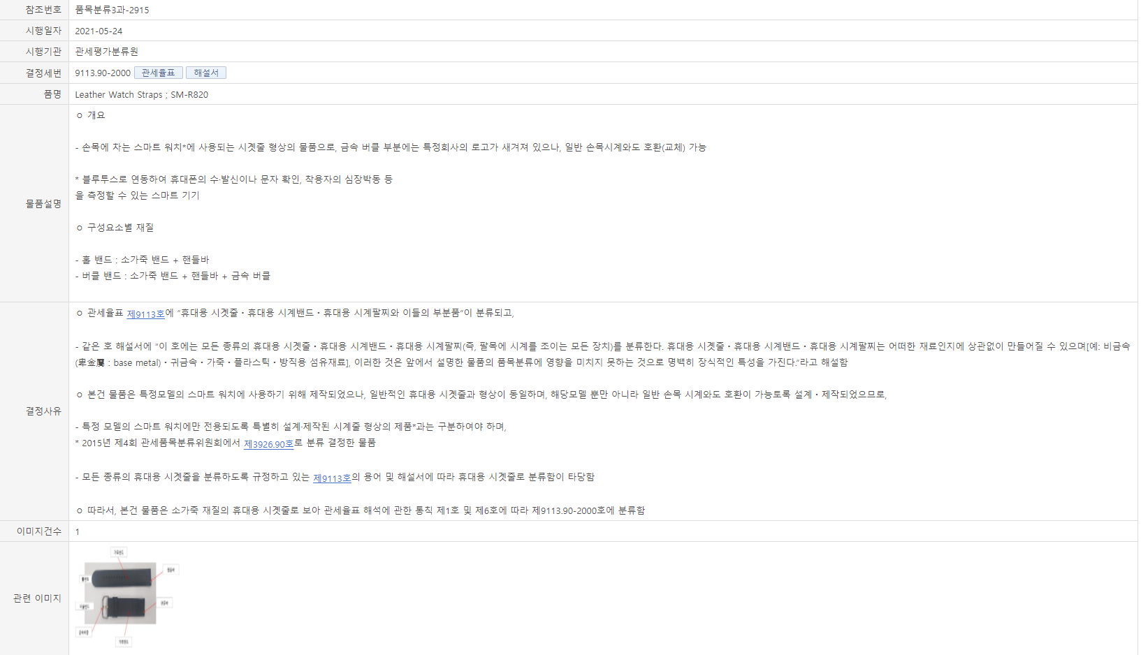 수입하고자 하는 시계줄의 정확한 품목분류는 용도, 재질 등을 고려하여 분류되겠지만 두분류 중 하나로 분류될 가능성이 높습니다.