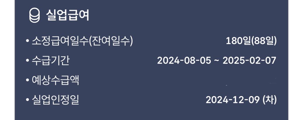실업급여 소정급여지급일 잔여일수가 이렇게 나오는데