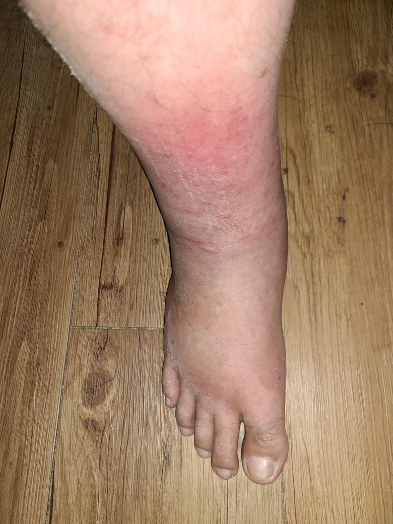 발이 붓고 발목쪽이 빨갛게 되고 약간의 통증이 있는데요 이거 왜 이러는 건가여? 엊그제 갑자기 발목에 통증이 오더니 사진처럼 되었는데 이게 뭔지 그리고 이게 뭐든 치료 받는다면 건강보험 혜택