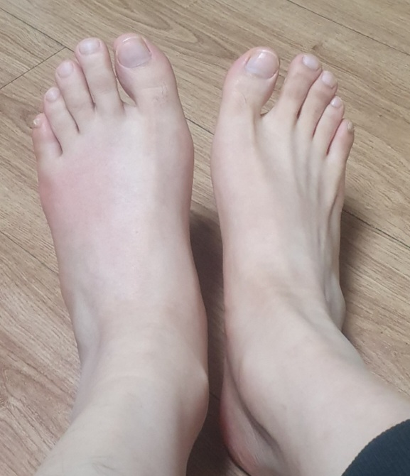 갑자기 자고 일어났더니 발이 퉁퉁 부어서 걷기가 힘듭니다. 이것은 통풍인가요? 염증인가요? 근육통인가요? 어디 부딪힌 적은 없는데 고통스럽네요