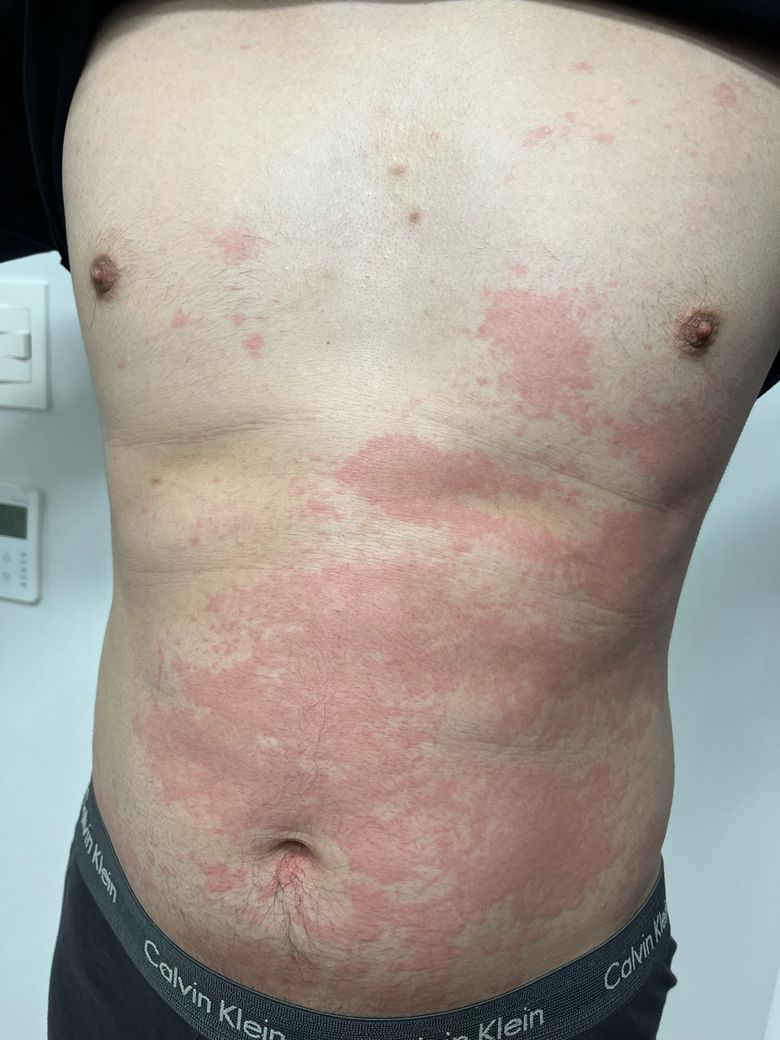 방진복 안에 속내의를 입는데 그게 잘 못된건지 목부터 시작해서 접히눈 부분이나 옷에 닿는 부분이 올라오고 간지러워요. 전신반응으로 나타나는 거 같아요.