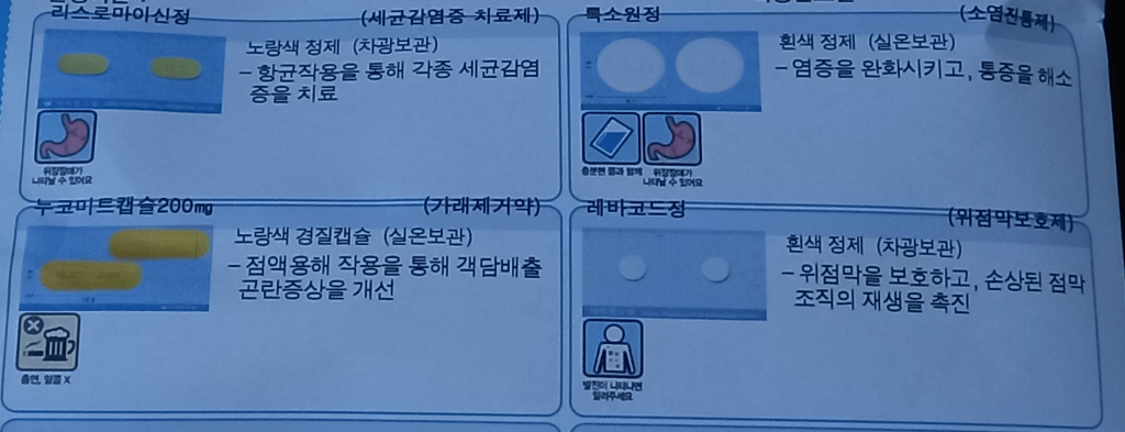 처방약은 소염진통제/항생제/기침가래약/위보호제로 처방되어있으며 일반적으로 당뇨에 영향이 가지 않습니다.