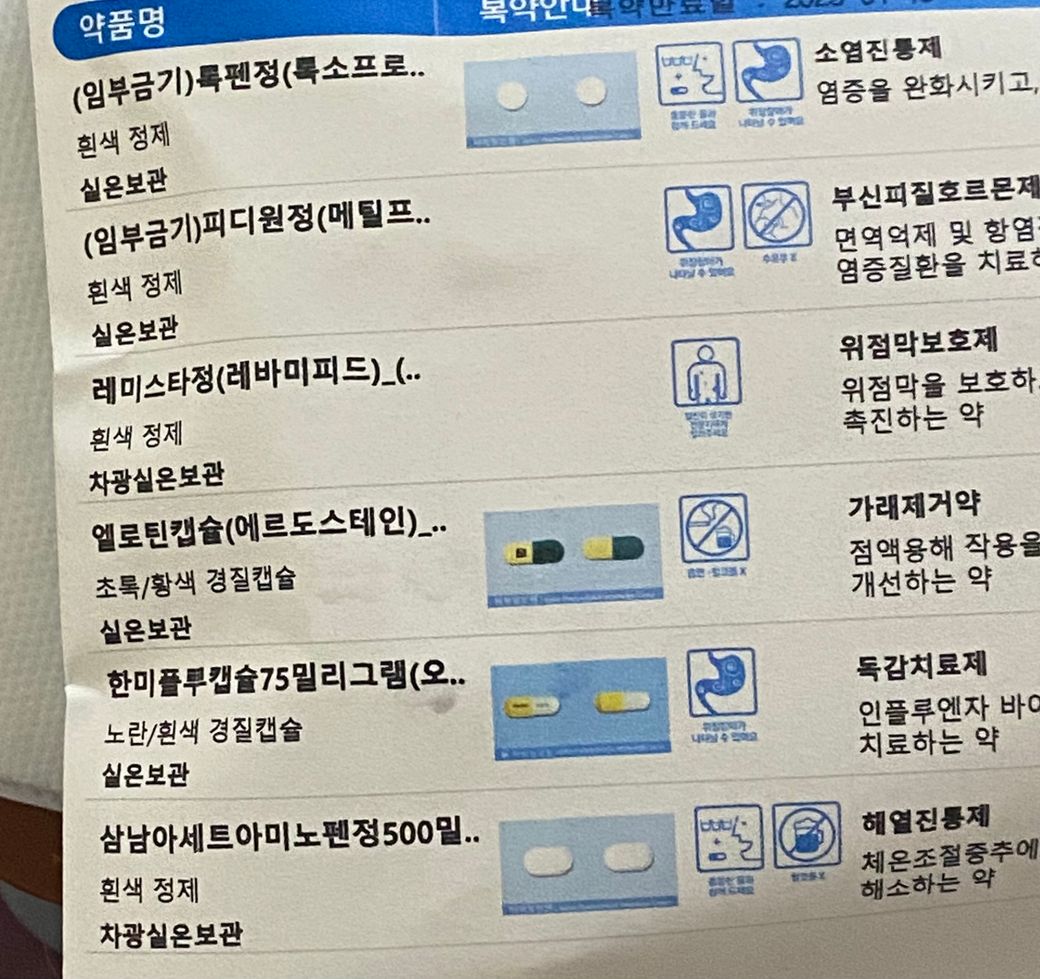 예 처방약 별 영향없으니 a형 독감 진단 받고 처방 받은 약들
