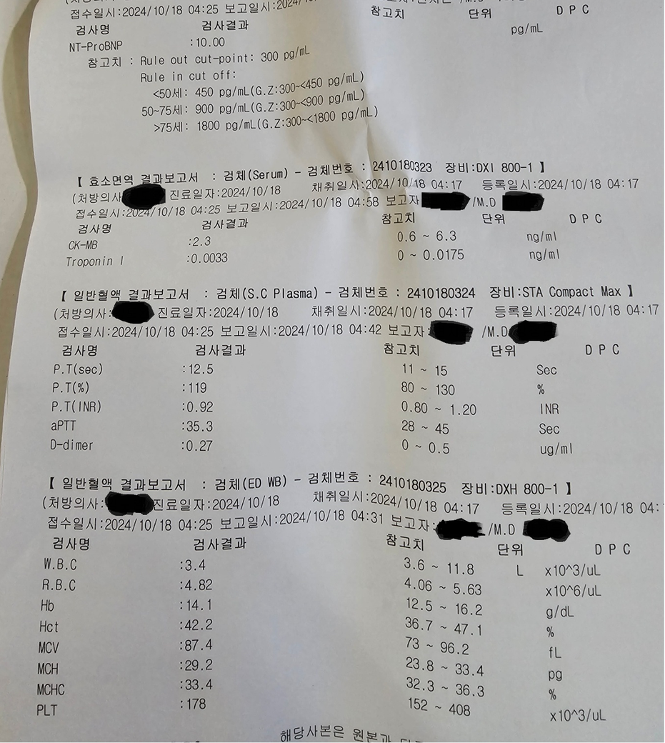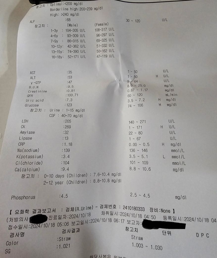 안녕하세요 10월18일날 응급실에서 검사한 피검사결과지 한번 확인해주세요