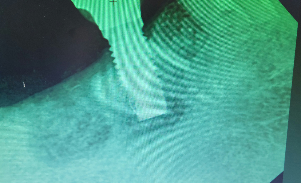 엑스레이 상으로는 잇몸색상을 알수 없습니다. 아마도 시간이 지나면서 잇몸이 퇴축되면서 임플란트의 나사선시 비춰보이는게 아닐까 생각됩니다.