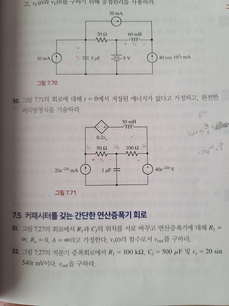종속전원이 혼자 있으면 대출 어떻게 하는지는 알겠는데 옆에 뭐가 있으면 어떻게 해결해야할지 감이 안 잡힙니다. 특히나 옆에 인덕터가 있어서 더욱더 모르겠습니다. 맨 왼쪽을 V1이라 잡으면 마디방정식은 어떻게 세워지나요???