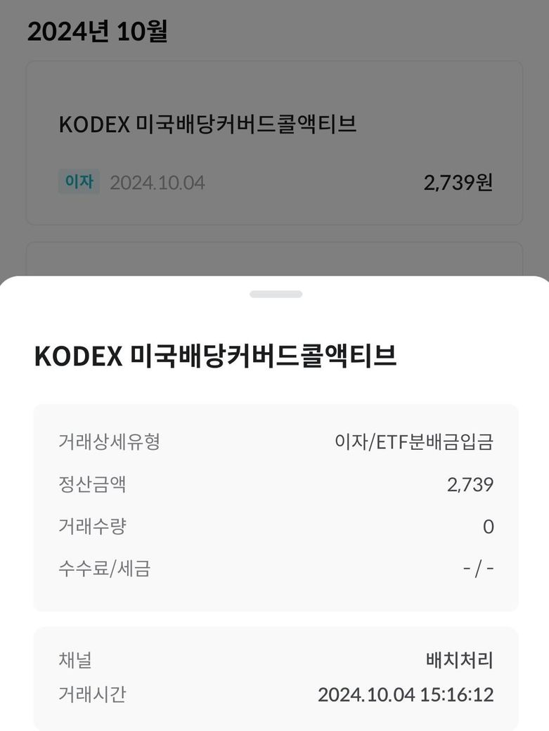 KODEX 미국배당커버드콜액티브 ETF에서 배당 소득에 대해 세금이나 수수료가 부과되지 않은 것은 계좌 유형에 따라 다를 수 있습니다.