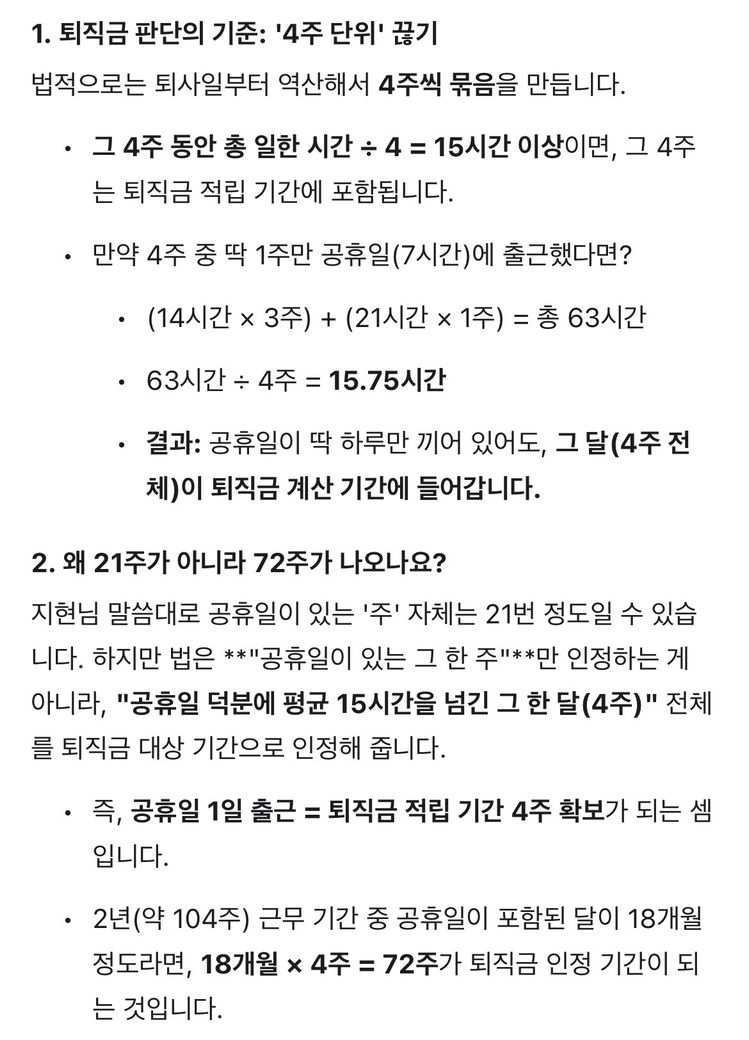 4주평균으로 계산해서 퇴직금을 받을 수 있다던데
