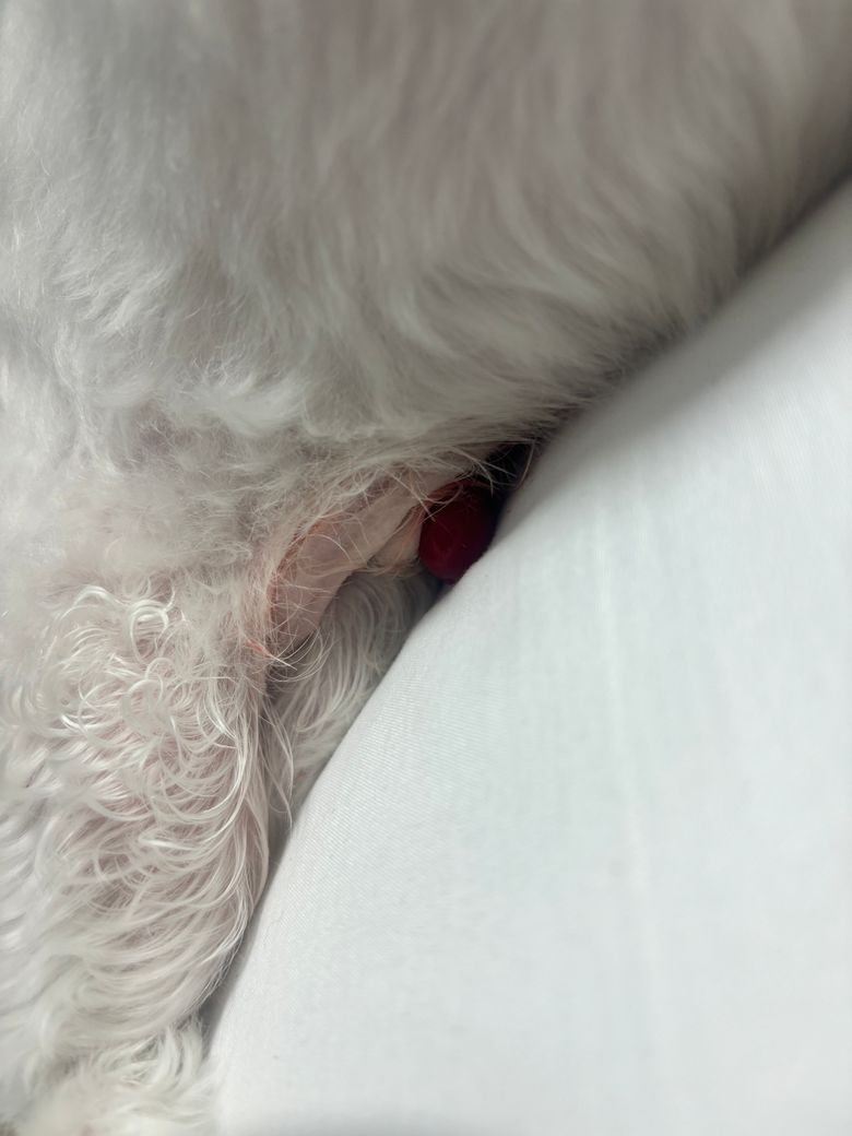 수컷강아지 생식기 부분이 5시간 째 돌출되어서 빨갛게 부어올라있어요 자기가 핥았는데 피도 조금씩 납니다 이거 왜 그런건가요?ㅠㅠ
