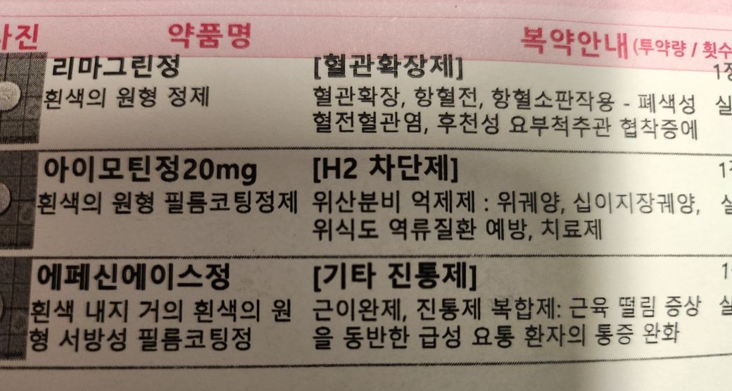 약을 이렇게 처방 받았는데요 사진 첨부합니다