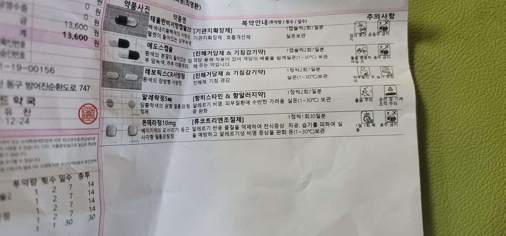 근데 어제 밤 천식약을먹고 난뒤 기관지염 약인 로민콤프를 먹고 나서부터 3시간만에 새벽에 갑자기 잠에서 깻는데
