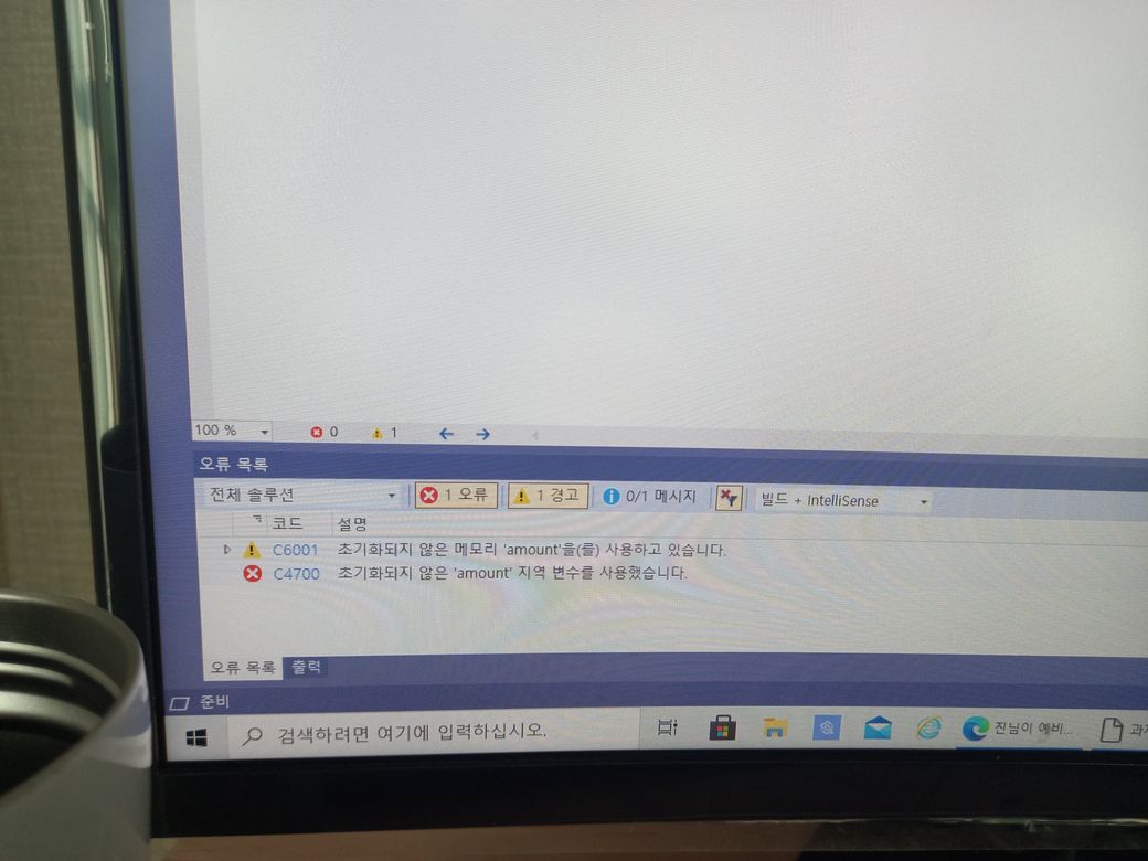 오류 코드에 보면 "초기화되지 않은 'amount' 지역 변수를 사용했습니다"라고 나오고 있습니다.