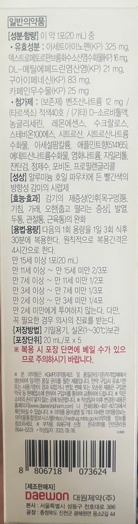 평소에 목감기 걸렸을 때 콜대원 파란색 먹으면 금방 괜찮아져서요..